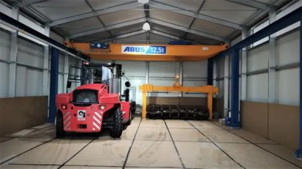 Durch die Gewinnung von Neukunden und der stetig wachsenden Nachfrage nach großflächigen Leichtbauteilen, hat sich Fa. Keim dazu entschieden Ihre Produktionsstätte mit einem Zweiträgerlaufkran zu erweitern. Der Abus-Kran kann beispielsweise Stahl-Werkzeuge mit 12,5t Gewicht und 3x2x1m Größe auf einer Fläche von 150m² verfahren.
